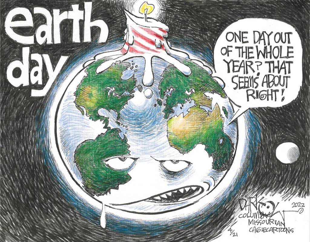 Editorial cartoons for Friday, April 22, Earth Day