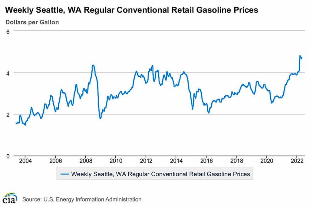 There are similarities to the sharp gas price increases in 2008. A notable difference is that a recession and high unemployment rate haven’t accompanied the current gas increase. The state’s unemployment rate in 2008 was 5.3% compared to this March as the pandemic lagged and it was 4.3%, according to the Employment Security Department.