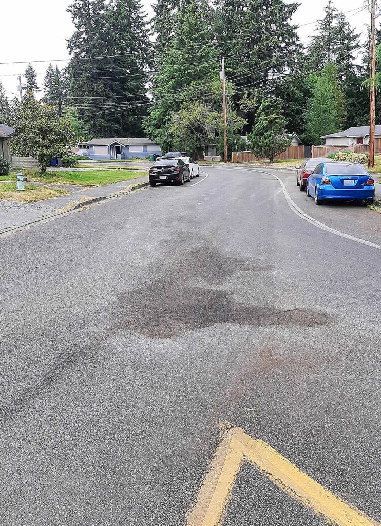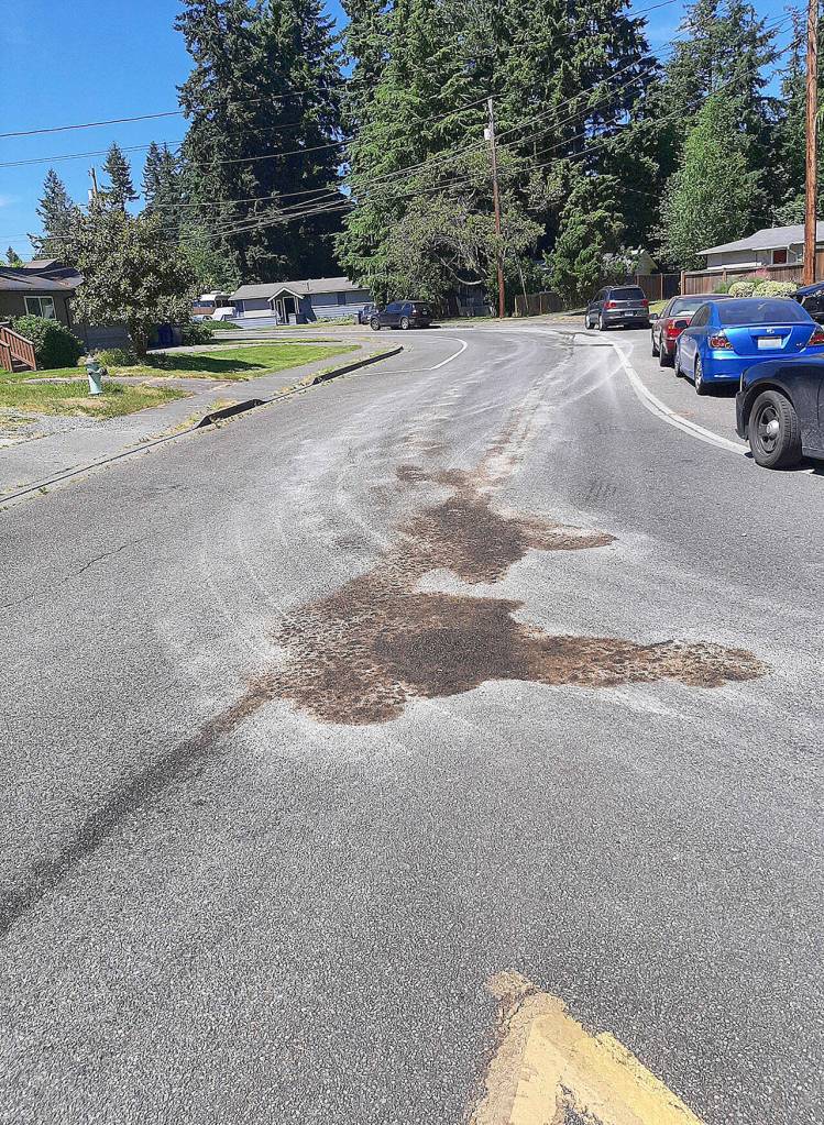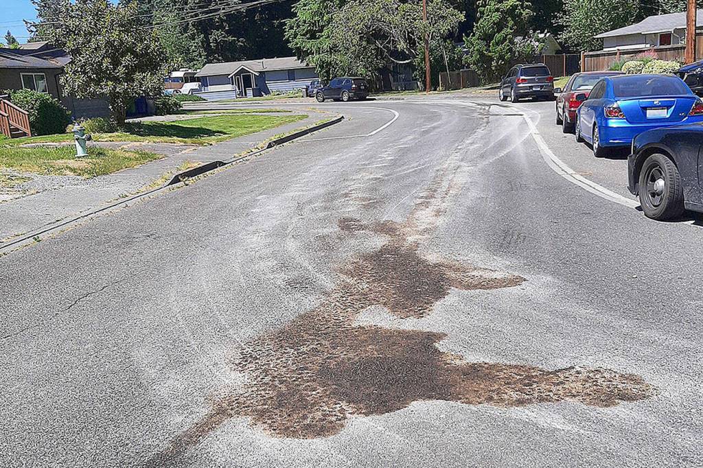 The leak happened during the heat wave that gripped Western Washington with record-high temperatures. The road’s asphalt surface expanded and absorbed some of the fluid.