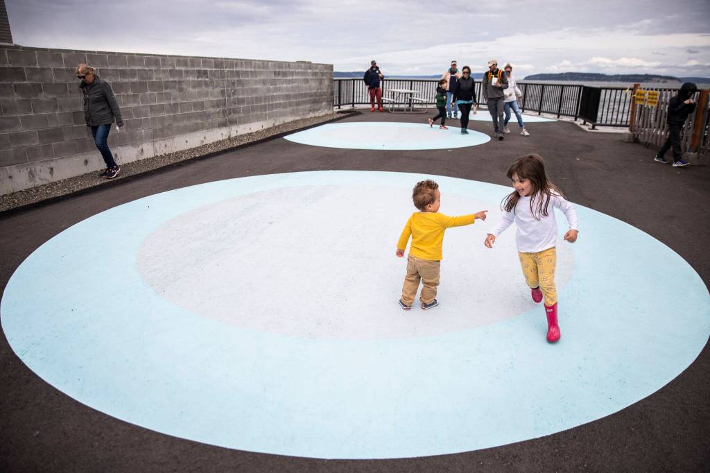 Now they can also play tag around the circles or down some suds on the Ivar’s side. Over the weekend, the parklet was a popular spot for kids burning off energy, walkers and diners.