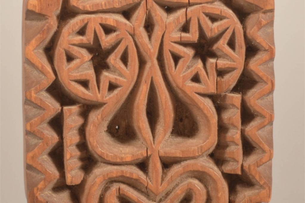 It isn’t easy to recognize this wood piece with a deeply carved design. Unlike today’s familiar decorating stamping tools, it wasn’t pressed into ink and used to print on fabric or paper; it is a butter print.