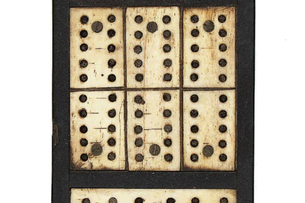 Sailors would make their own boards out of carved whalebone, animal teeth or tusks. This 19th-century game board, which sold for $531 at an Eldred’s auction, has pierced whalebone panels on an ebony and mahogany board. Sailors continued playing cribbage after whaling declined. Most ships still have a cribbage board today. The U.S. Navy has a board that gets handed down to the oldest submarine in the Pacific fleet, a tradition that originated when an officer was dealt a perfect hand in a game played during World War II.