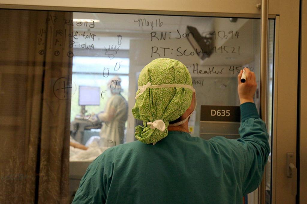 The covid-19 ward at Providence Regional Medical Center Everett in May 2020, three months into the pandemic. (Andy Bronson / Herald file)