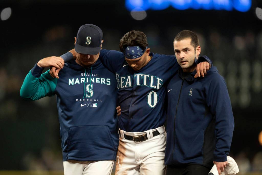 Sam Haggerty singled with two outs in the ninth and hurt his left groin while sliding into second base successfully on a steal attempt. He needed assistance to leave the field, an arm draped over manager Scott Servais and an athletic trainer.