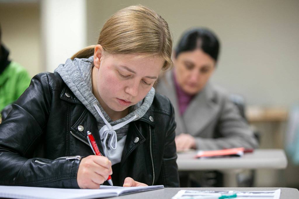 Snohomish County is home to 1,905 Ukrainian refugees, and it ranks as the 16th most populous county in the United States for people fleeing the Russian invasion, U.S. Rep. Rick Larsen, D-Everett, said earlier this month. So every weekday, hundreds of Ukrainian refugees gather to muddle through the syntax of a language very different from their own.
