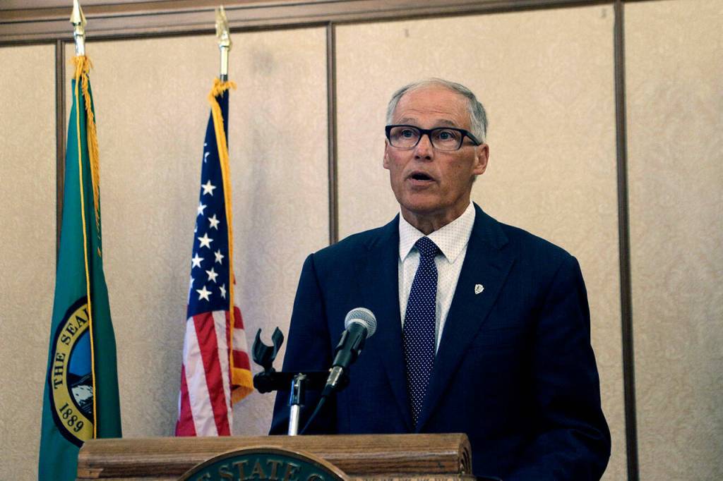 Gov. Jay Inslee announces during a news conference in Olympia, on Sept. 8, that the state of emergency sparked by the COVID-19 pandemic will end Oct. 31, nearly three years after the Democratic governor first issued the order. (AP Photo / Rachel La Corte)