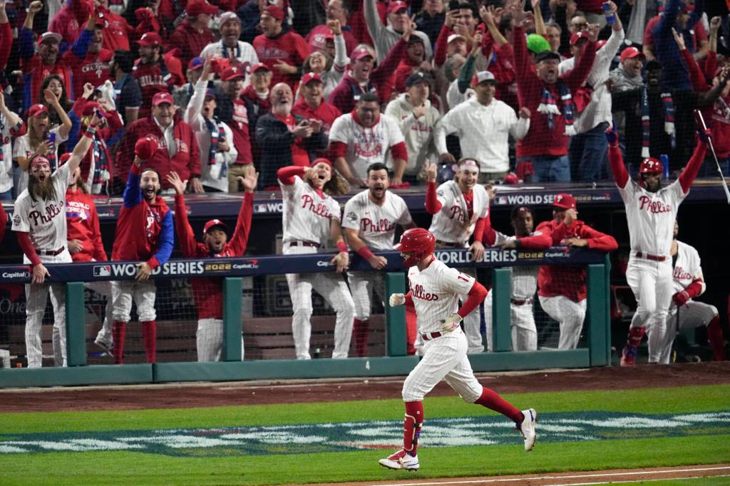 Brandon Marsh also homered, and Kyle Schwarber and Rhys Hoskins hit back-to-back shots in the fifth inning to chase Astros starter Lance McCullers Jr. Philadelphia used the long ball to end the long wait for its first World Series home win since Game 5 of the 2009 World Series.