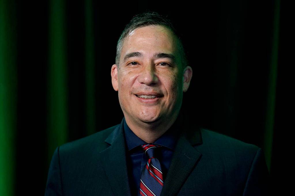 Washington Secretary of State Steve Hobbs poses for a photo before taking part in a debate on Aug. 17, in Olympia. (AP Photo / Ted S. Warren, File)