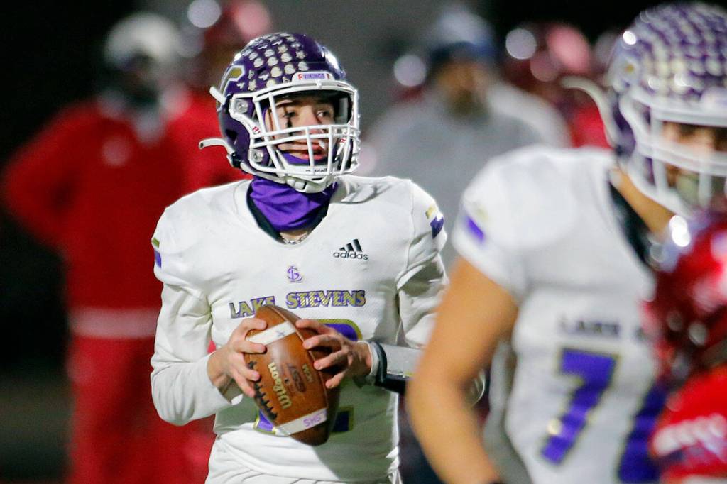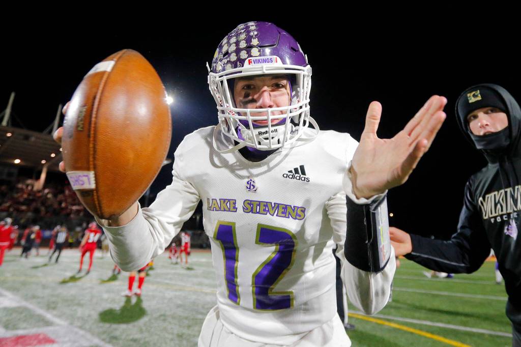 “Last year he was a freshman against Graham-Kapowsin in the rain and the wind, and he was trying to help us, but he knew it was going to be tough,” Lake Stevens coach Tom Tri said. “You could see he was real tight, he was nervous. This year he was much more poised, much more relaxed. I’ll tell you what, they put every bit as much pressure on him as Graham-Kapowsin did last year, but he just didn’t let it bother him. ‘Hey, next play coach. Yeah, I know I screwed up the last play, what’s the next one?’ I could tell he was a lot more relaxed and a lot more dialed into the game.”