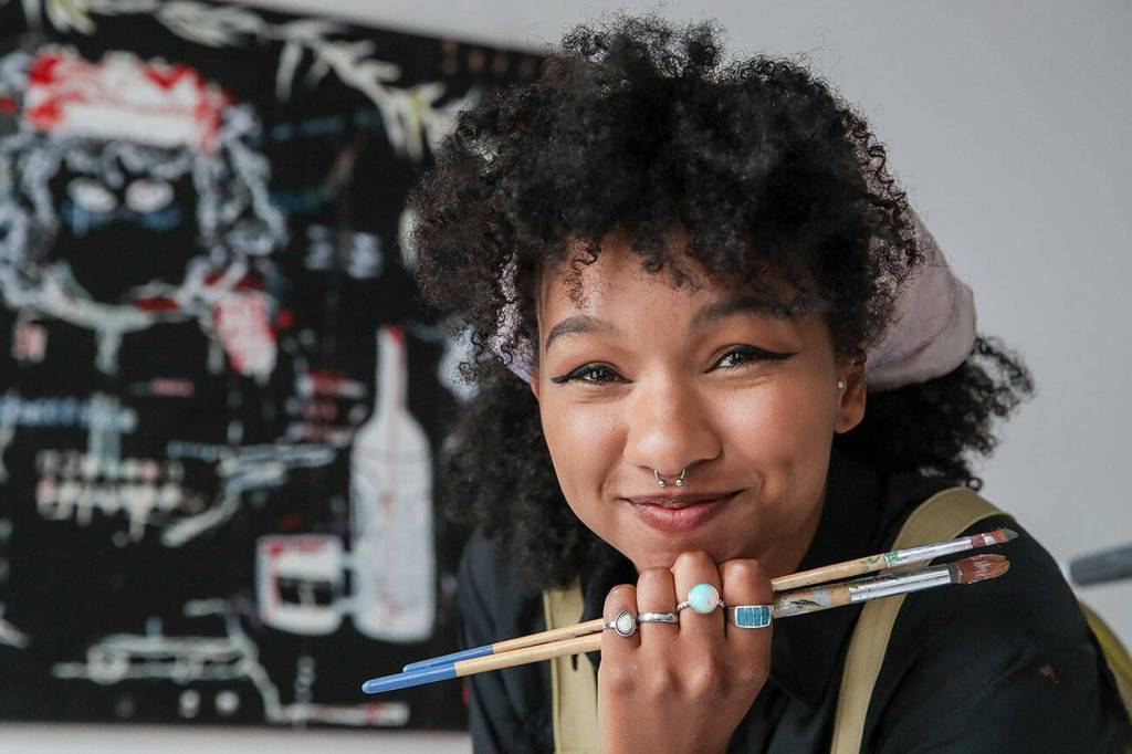 The artist, 24, specializes in mixed-media, murals, printmaking and upcycled, or recycled, art.