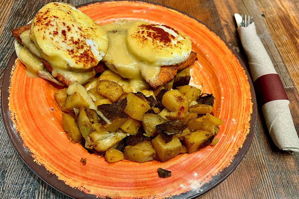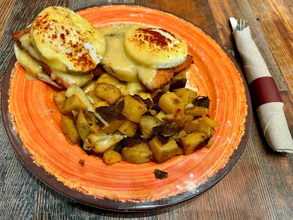He also ordered Salmon Eggs Benedict with a side of skillet potatoes, $16.