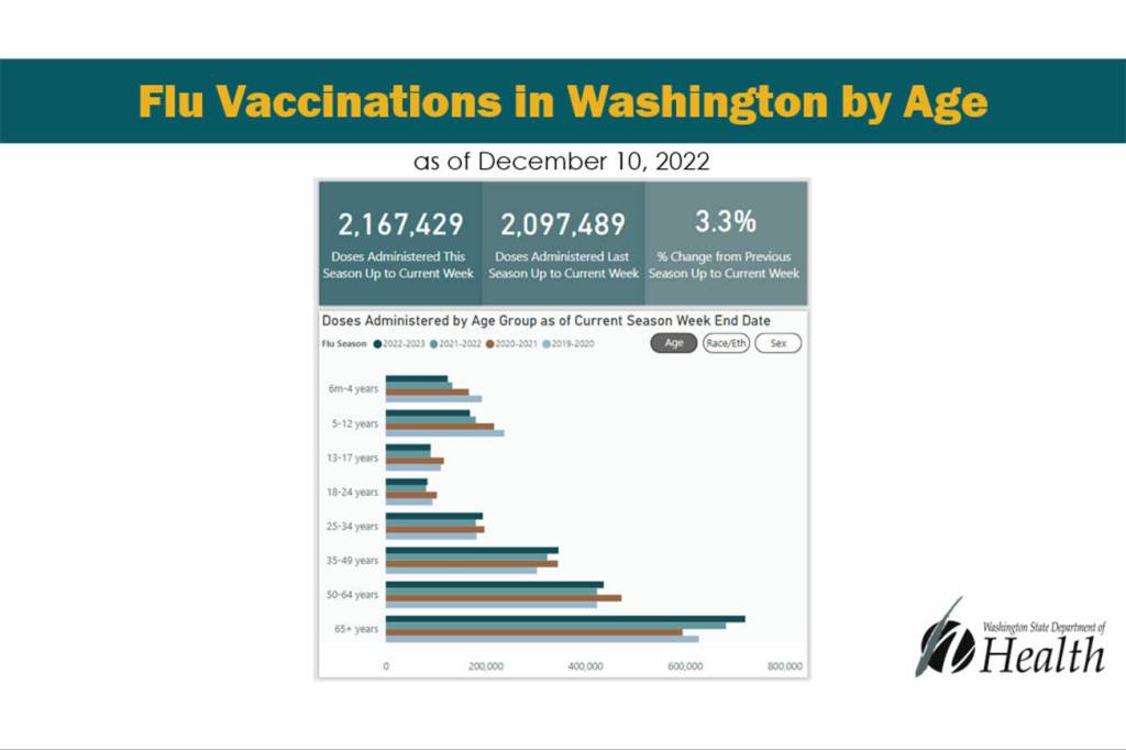 In Washington, there have been 26 influenza-related deaths this flu season so far. That is the same number of deaths as the entire 2021-22 flu season. Snohomish County has recorded three flu-related deaths since Oct. 2, the beginning of the 2022-23 flu season as set by the Centers for Disease Control and Prevention.