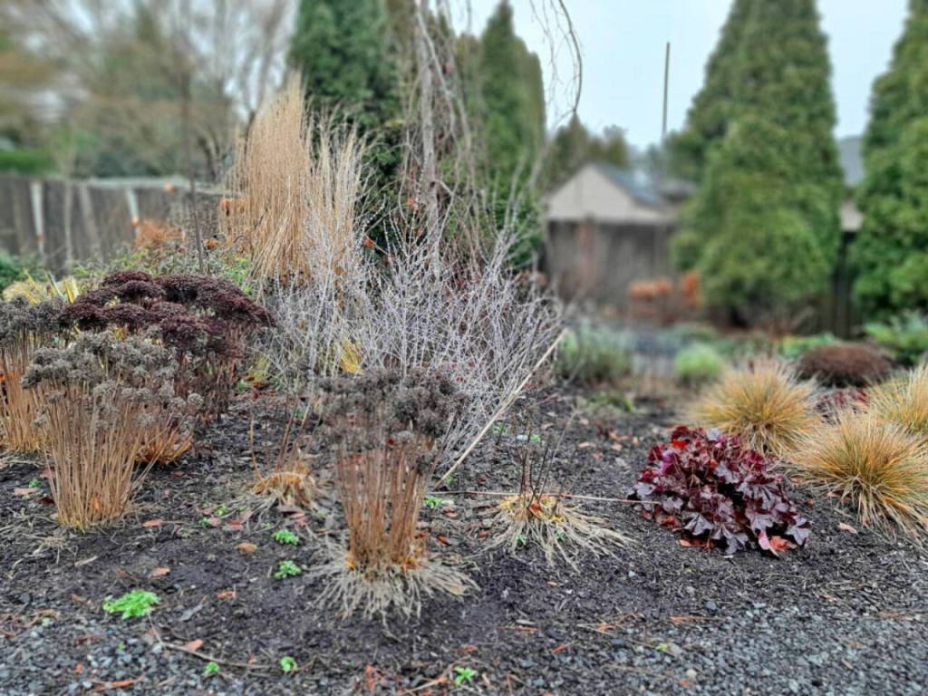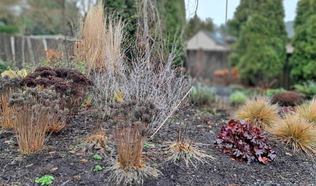 Not only is a garden still “full of structure” more interesting to look at, it is also a veritable wonderland for our feathered friends. It is such a delight to watch my birds scamper under and over all the still-standing dormant perennials, deciduous shrubs and evergreens as they look for seeds and play hide-and-seek. If only I could be there with them dashing and darting amongst what must feel like giant forests of vegetation for these little guys. Looking out my glass door with a cup of coffee in my hand, these aeronautical acrobats provide countless hours of entertainment in these otherwise dark and dull days of winter.