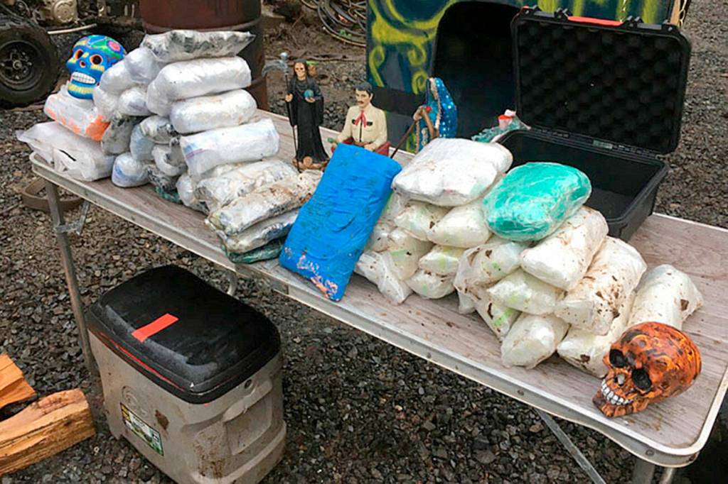SEATTLE — The leader of a major Snohomish County drug trafficking ring, who buried pounds of methampetamine, heroin and fentanyl and hundreds of thousands of dollars across his Arlington property, was sentenced Tuesday to 15 years in federal prison.