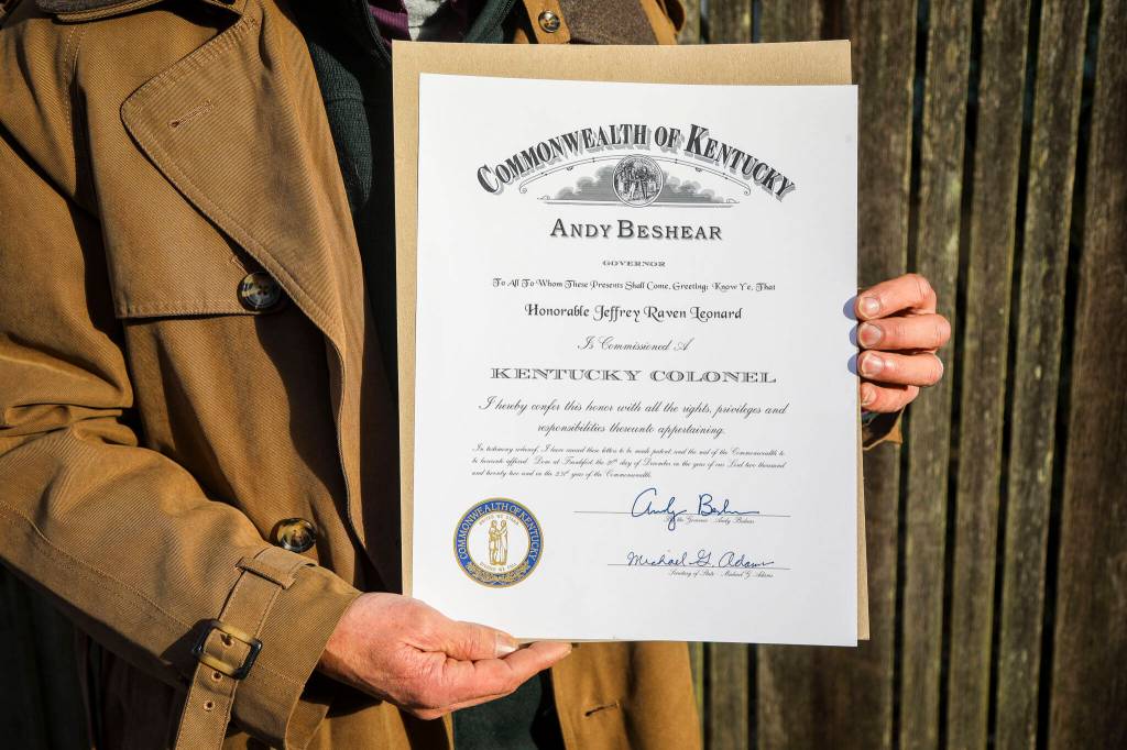 Leonard received the official Kentucky Colonel certificate earlier this month.