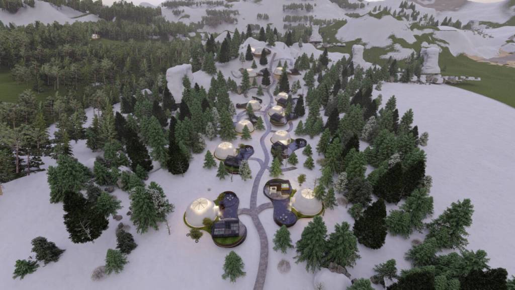 The renderings depict the ultimate Instagram influencer’s winter haven, complete with picturesque meandering pathways leading to the domes nestled in snowy hillsides among towering evergreen trees, just 30 minutes from the Mount Baker Ski Area.