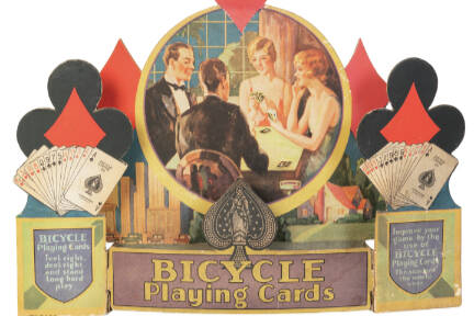 Bicycle Playing Cards may be the most recognizable brand by the United States Playing Card Co. The brand has been around since 1885. One look at this store counter display advertising Bicycle Playing Cards will tell you that it’s not from the late 1800s.