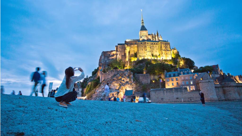 Though a dreamscape from a distance, through the midday Mont St-Michel becomes grotesquely touristic. In summer, Mont St-Michel’s main street, lined with shops and hotels leading to the abbey, can be a human traffic jam. It’s some consolation to remember that, even in the Middle Ages, this was a commercial gauntlet, with stalls selling souvenir medallions, candles and fast food. Today, the village’s seven full-time residents continue to live solely for its visitors.