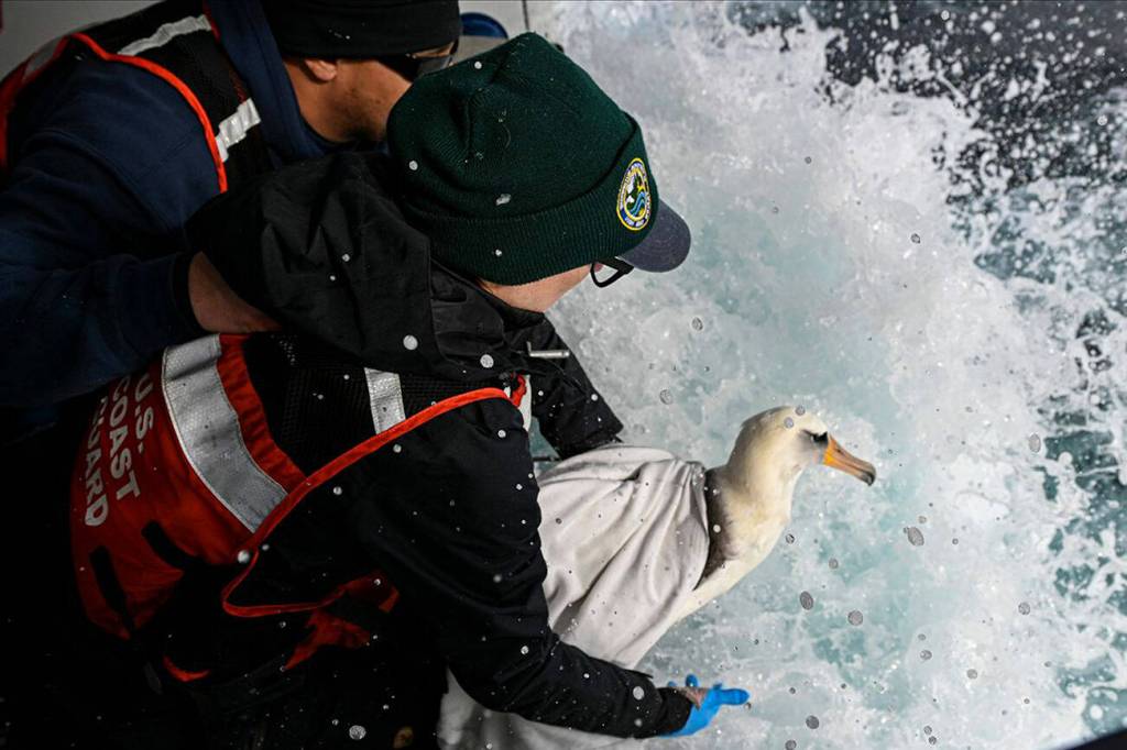 When the bird eventually proved it was up for heading back out on the waves, Denice and Mannas coordinated with the Coast Guard to catch a ride on the appropriately named USCGC Osprey. The cutter would take them and their avian ward 80 miles offshore from Port Angeles, where they could release the albatross onto the open water where it belonged.