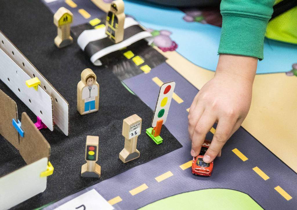 With the 3-D model before her, Sonahla’s voice rose along with her comfort and confidence as she explained her idea: Replace the four-way stop at 28th Avenue W and 204th Street SW with traffic signals.