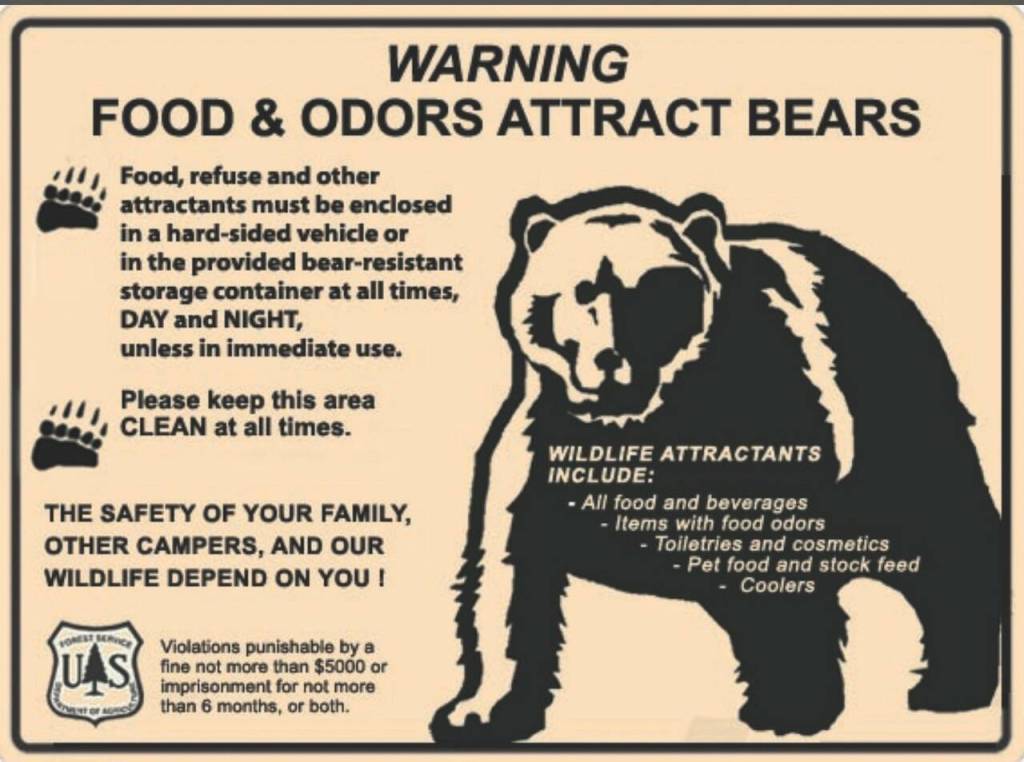Bear attractants can also be stored inside a fully inaccessible compartment in a locked and closed vehicle.