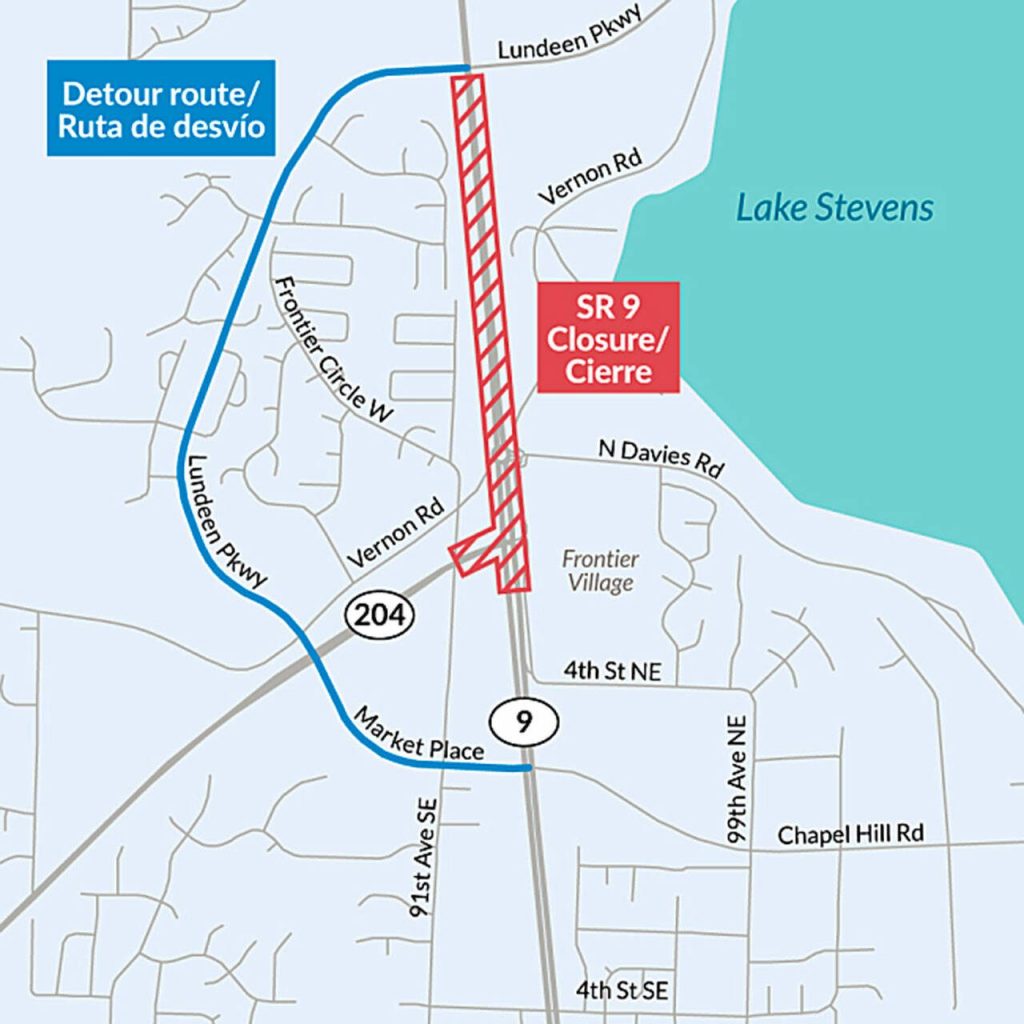 Later this month both directions of a Highway 9 stretch are set to close in Lake Stevens for a week.