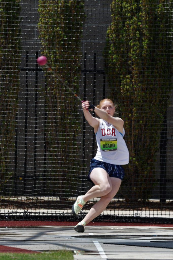 Competing in rainy conditions, Beard unleashed a huge personal best with her first throw, but fouled. While the mark didn’t count, it gave her confidence she could win the event in which she finished eighth a year ago.