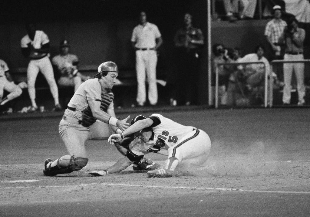 With two outs in the bottom of the eighth and the Angels’ Brian Downing on second as the go-ahead run, Yankee Graig Nettles hit a sharp drive that bounced in front of Parker. Parker gloved it cleanly and in one motion fired to catcher Gary Carter who made a sweeping tag of a sliding Downing for the final out of the inning.