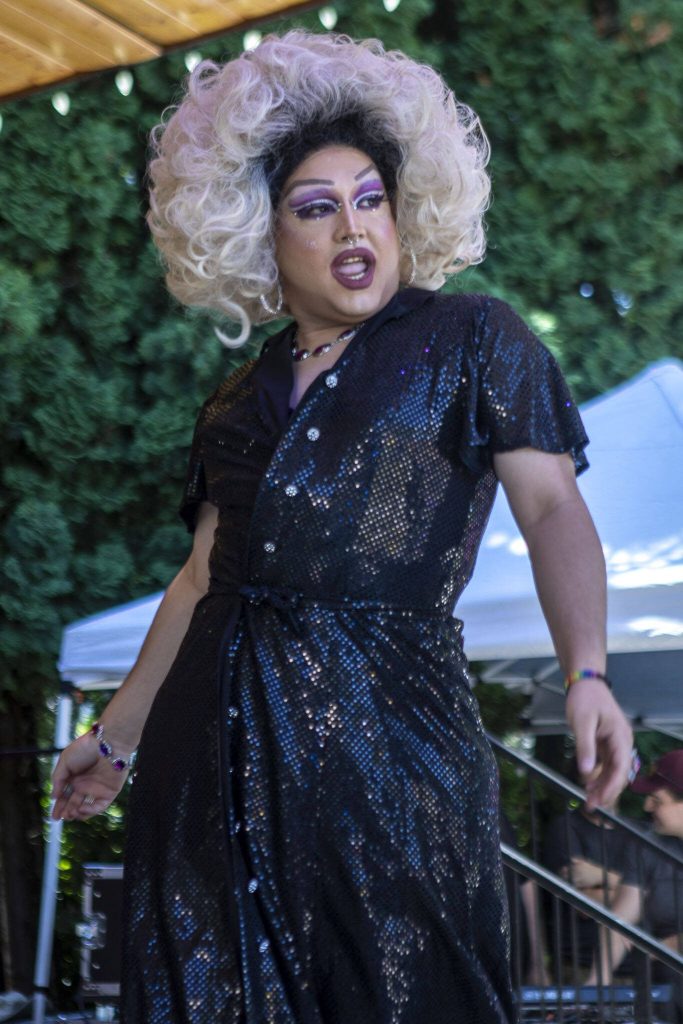 “There’s still so many people that live right in these small towns, artists yearning for representation and don’t want to have to travel all the way to Seattle to get it. They want to be represented right where they live,” said Gina Touché, a drag performer and the event’s MC. “And it doesn’t have to be extravagant all the time. We do this because there’s so much to fight back that sometimes you need the extravagance.”