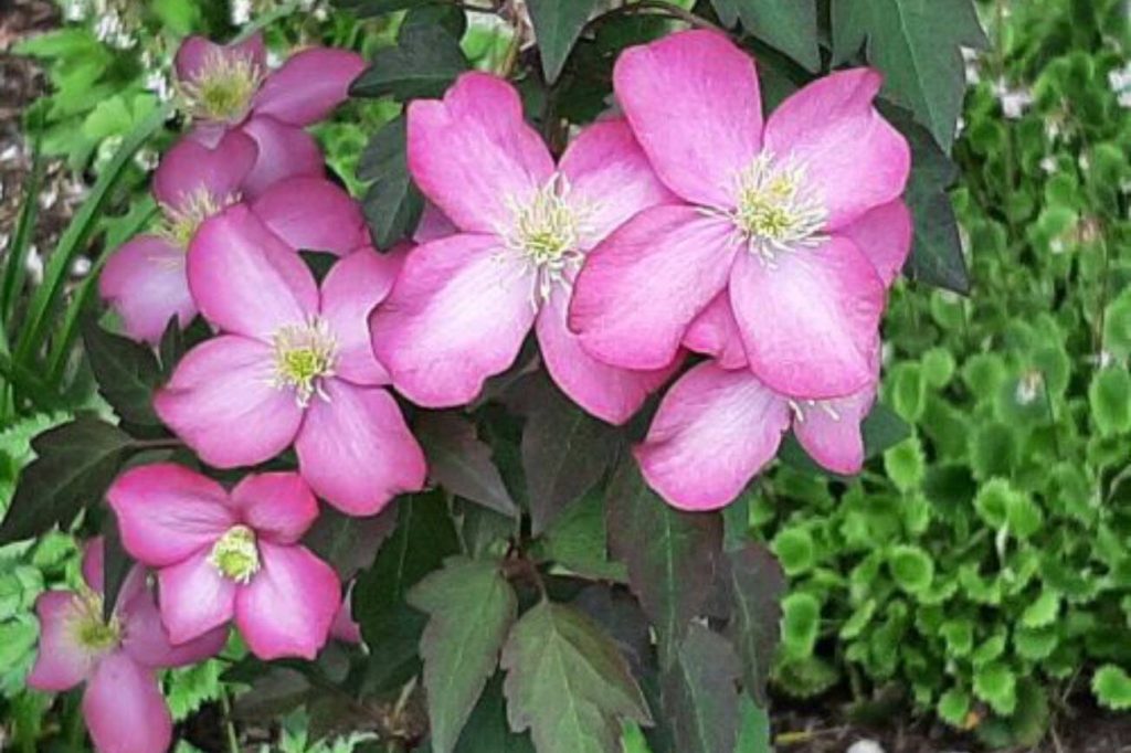 What: If you do not have the space for a full-sized Clematis montana, try the more subdued ‘Freda’. This deciduous vine will grow about 15 to 20 feet, which is almost half the size of typical montanas and can easily be pruned further. It is also one of the most intensely colored montanas with flowers that open a deep, mauve red and then soften to a rich pink. A light, sweet fragrance dances in the breeze when in full flower. The dogwood-like flowers have attractive broad, petal-like sepals that give a full flower appearance. As the flowers fade striking bronzy foliage emerge, gradually deepening to a dark green.
