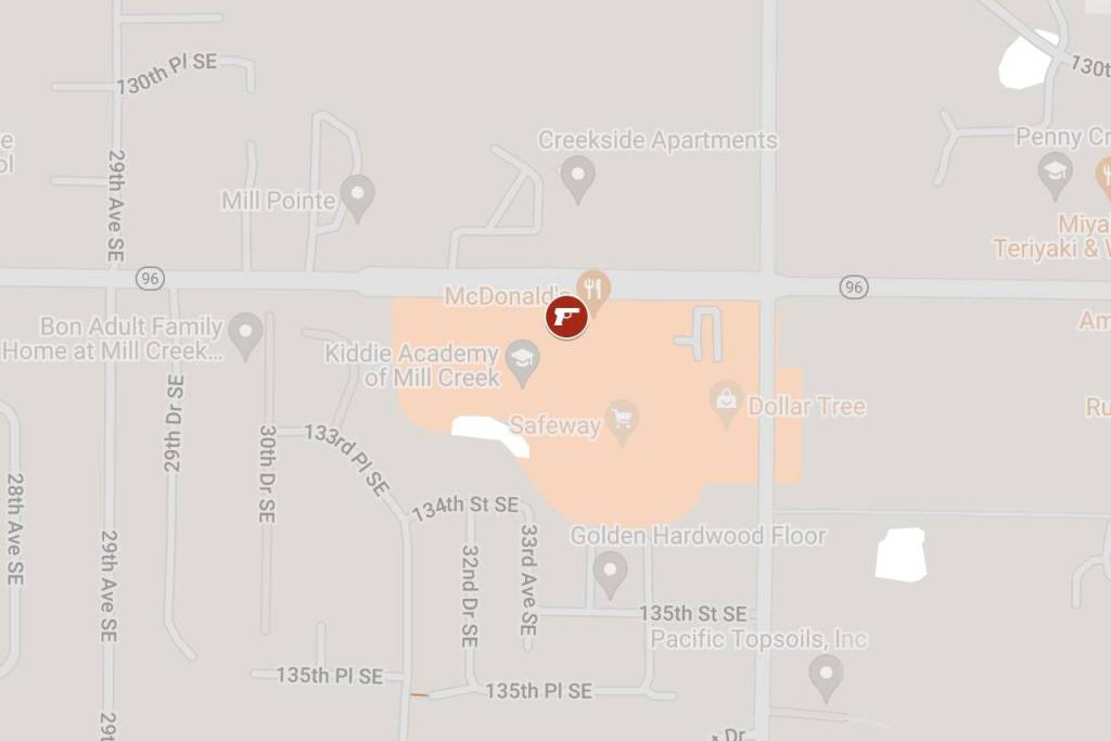 Around 2 a.m., reports of gunshots in the 3300 block of 132nd Street SE led officers to find a “male” with a gunshot wound at the Thomas Lake shopping center, Mill Creek police said in a press release Monday afternoon.