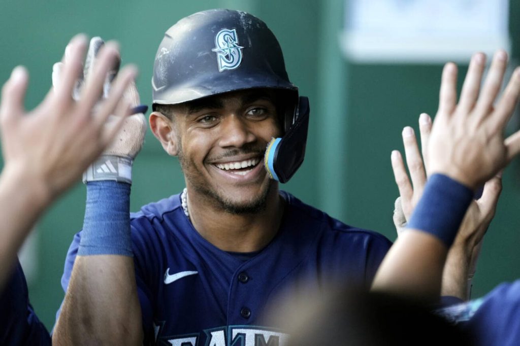 Julio Rodriguez had four hits for Seattle, including a ninth-inning single that provided an insurance run the Mariners ended up needing. Cal Raleigh added a home run and a double.