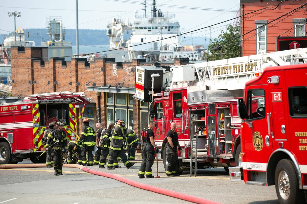 Firefighters carried out several searches and verified no one was trapped inside, said Bronson Pearson, fire inspector for the Everett Fire Department. By 1:30 p.m., crews had most of the fire out.