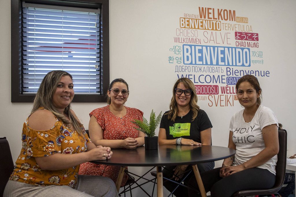 Alvaro Guillen, the organization’s director, interpreted for Prestamo as she explained in Spanish how much the services have helped her and her family. Another immigrant, Johana Duarte, sat beside Prestamo in Connect Casino Road’s conference room, nodding along.