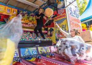 Alrington fans reacts to a point during the game against Stanwood on Tuesday, Sept. 19, 2023 in Arlington, Washington. (Olivia Vanni / The Herald)