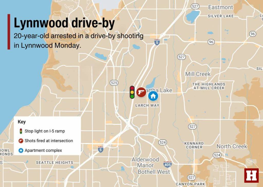 Both vehicles went east on 164th Street and stopped at a red light at the intersection with 13th Avenue W. The driver in the Jeep pulled up to the car and fired two rounds from a handgun through the right rear passenger window, Grieve wrote. The man in the other vehicle called 911 and tried to follow the Jeep, but lost sight of it. No one was injured.