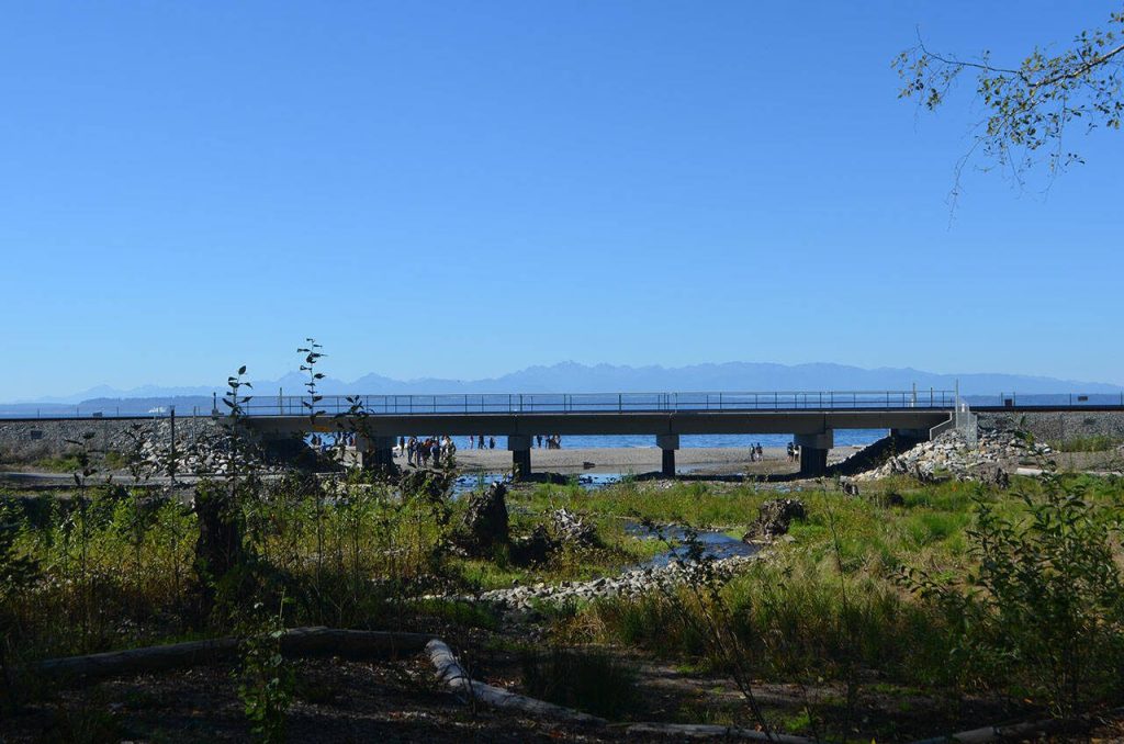 A 1.3 acre plot of land offering respite to traveling salmon is now protected. The project also opened up a beach to easy public use and added a bridge where an embankment had stood.