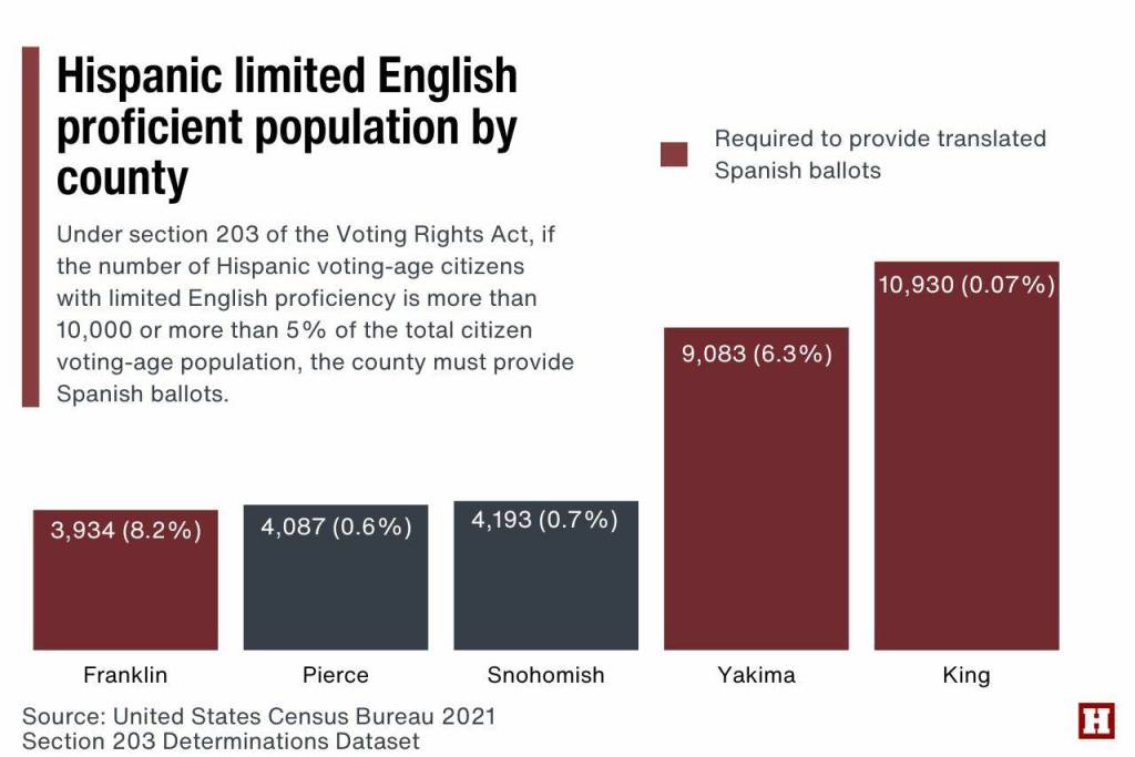 Four counties in Washington — King, Yakima, Franklin and Adams — are required to provide election materials in an alternate language, based on their demographics.