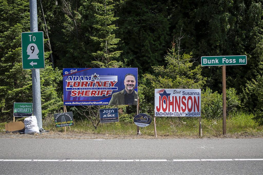 EVERETT — High-profile endorsements and hundreds of thousands of dollars have poured into the Snohomish County sheriff race between incumbent Adam Fortney and challenger Susanna Johnson.