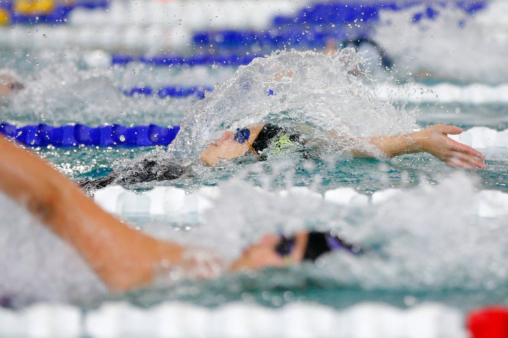 The Timberwolves took first in 7 of 12 events, tallying up 538 points to the Grizzlies’ 493 behind a strong group effort as they reeled in their fourth district crown in the past five seasons Saturday at the Snohomish Aquatic Center.