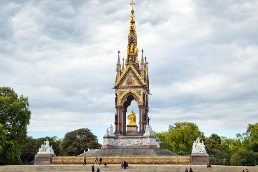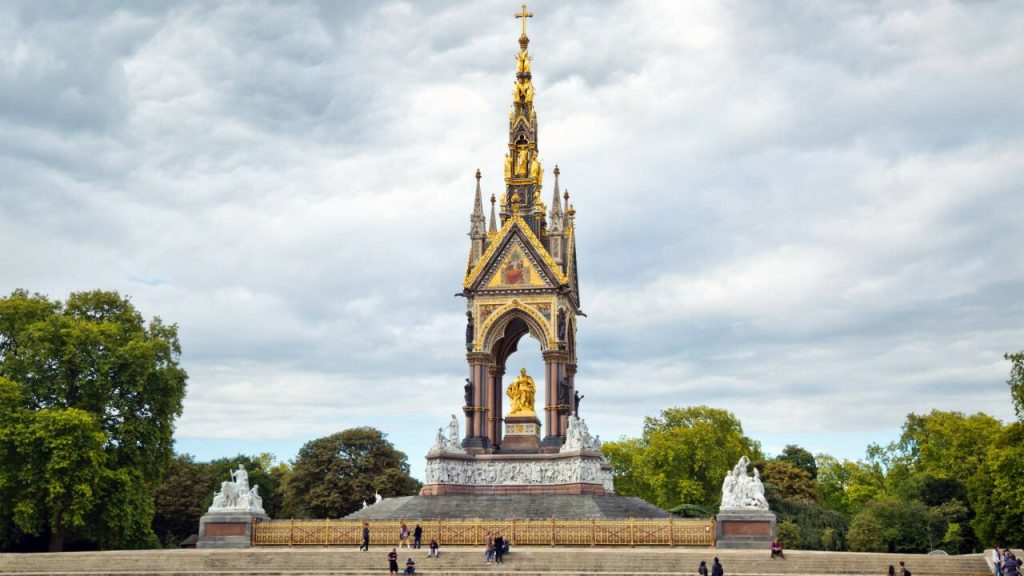 Across the street from the V&A is the towering Albert Memorial. Restored with three dazzling layers of gold leaf, it features Albert holding a book that people assume is the Bible. It’s actually the catalog of the Great Exhibition of 1851, which Albert spearheaded. Victoria declared that the opening of the fair, which 6 million people attended, was the “happiest, proudest day of (her) life.”