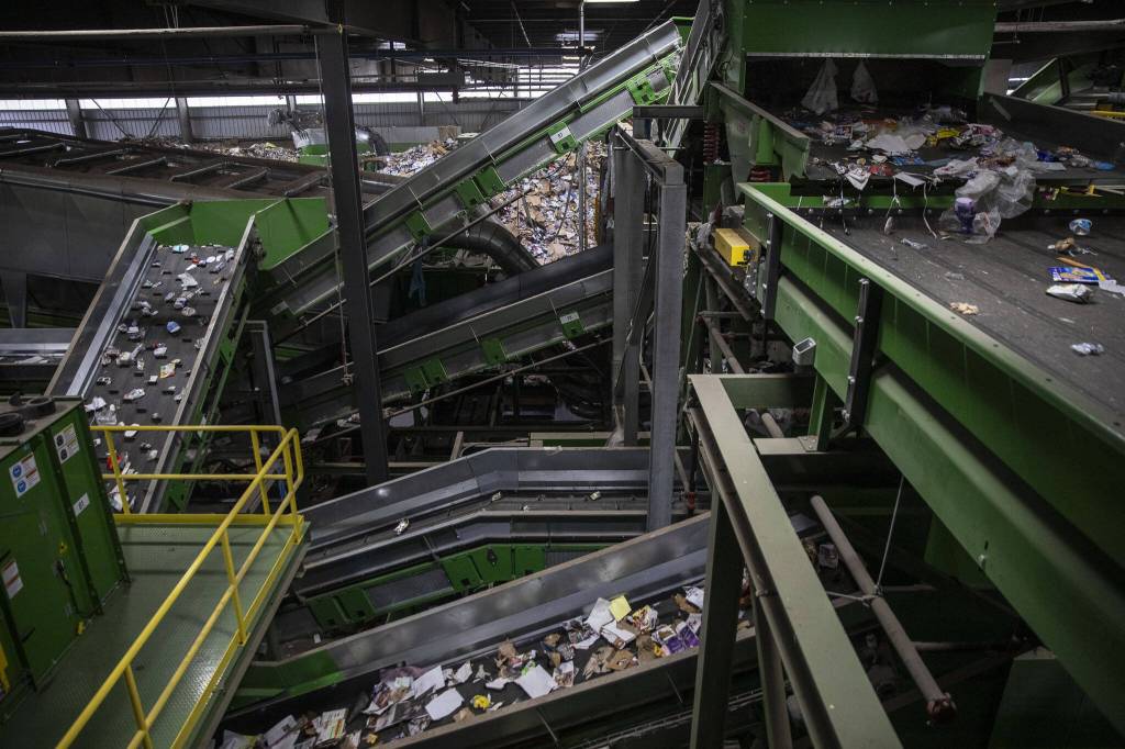 Items are sorted for recycling inside the Waste Management Cascade Recycling Center in Woodinville, Washington on Wednesday, Nov. 1, 2023. (Annie Barker / The Herald)
