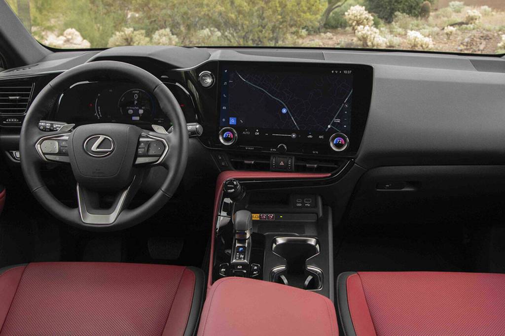 There are two optional packages for the NX 350h: Premium and Luxury. The Premium package extra features include ventilated front seats, a moonroof, hands-free power liftgate, rain-sensing wipers, front and rear parking sensors, memory for the driver’s seat and steering wheel settings, front and rear parking sensors, and a power-adjusting steering wheel.