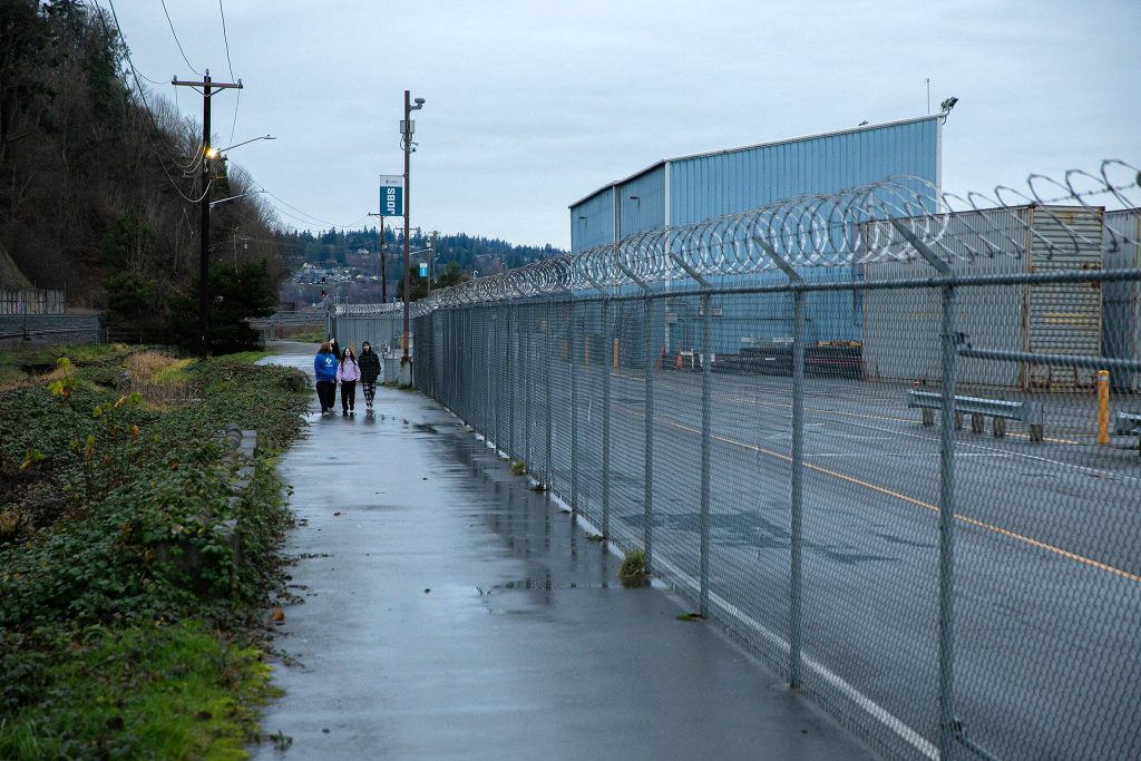 Meanwhile, the Port of Everett opened the Pigeon Creek Trail in 2005 — a skinny strip of asphalt hemmed in by chainlink fence, with the railroad tracks on one side, shipping containers and massive cranes on the other.