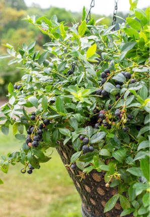 The Bushel and Berry program: There are some wonderfully useful choices in this series, all of which are more compact, partially self-fertile and good options for both growing in containers or in the ground. Many of them, such as Pink Icing and Silver Dollar, have striking foliage color. Others, such as Sapphire Cascade, even trail and could be used in a hanging basket. Two that I have used in my own yard are Jelly Bean, which is self-fertile in containers, and Berry Bux, a wild-type blueberry that is super tasty.