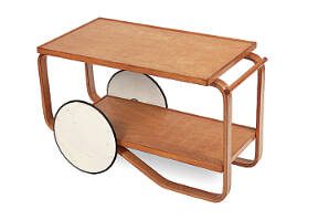 This cart, made of birch with white enameled wheels, was designed in 1948 by Alvar and Aino Aalto, the Finnish husband-and-wife team that co-founded the furniture company Artek. An Eldred’s auction described it as a “tea trolley” rather than a cart. The old-fashioned name didn’t decrease its appeal, as it sold at the auction for $2,650.