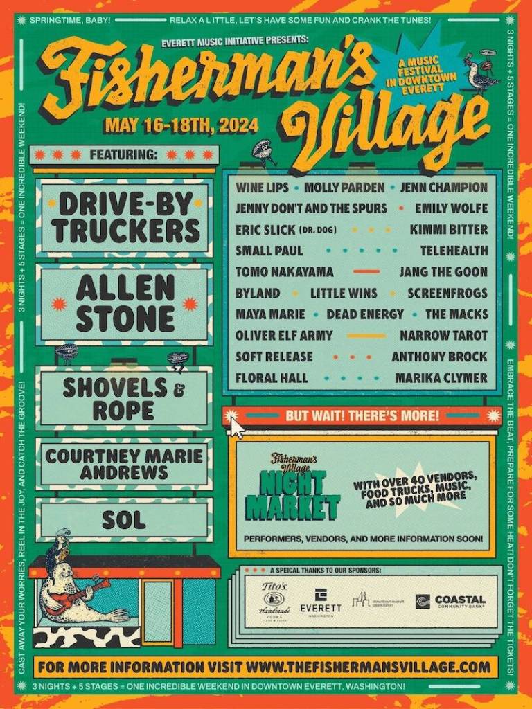 The lineup for the 2024 Fisherman’s Village Music Festival dropped Friday afternoon, to the thrill of live music lovers, foodies and nightlife fans across Snohomish County. This year’s fest, set for May 16 to 18, will feature acts from across genres and geography in downtown Everett for three nights of fun.