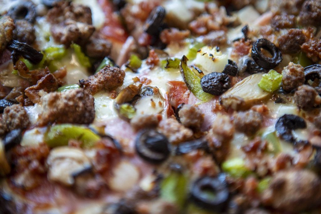 The 8 Corner Detroit-style Jet 10 ($35.55) was topped with mozzarella, pepperoni, ham, hamburger, Italian sausage, bacon, mushrooms, onions, green peppers and black olives. It had eight pieces, as did the 8 Corner Veggie ($32.36) with mushrooms, onions, green peppers, black olives and tomatoes.