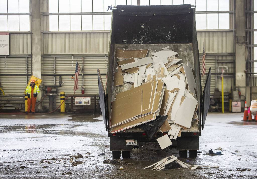 The Snohomish County Public Works facility, just down the road from Paine Field, has rows of containers labeled for traditionally recyclable items, like beverage cans and cardboard, as well as bins for things like batteries and propane tanks.