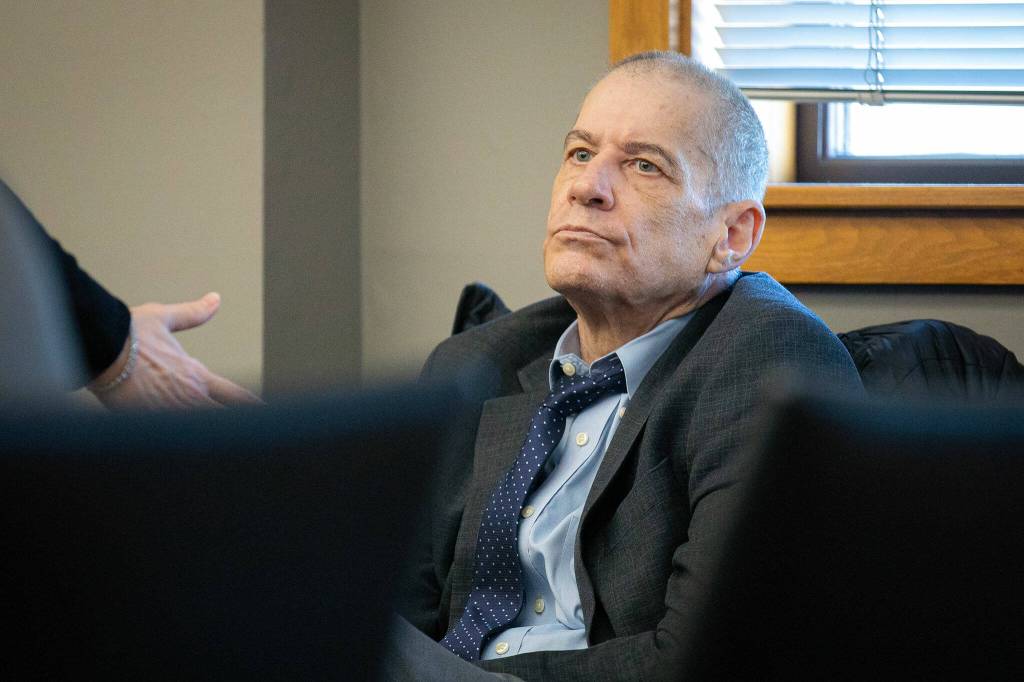 Alan Dean, who is accused of the 1993 strangulation murder of 15-year-old Bothell girl Melissa Lee, appears in court during opening statements of his trial on Monday, March 18, 2024, at Snohomish County Superior Court in Everett, Washington. (Ryan Berry / The Herald)